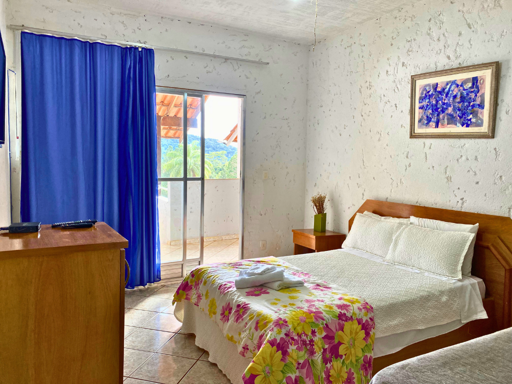 - Café da manhã gratuito, Cama casal padrão, Cama de Solteiro, TV Smart, Frigobar, Ventilador, Varanda, Vista da Mata, Banheiro
