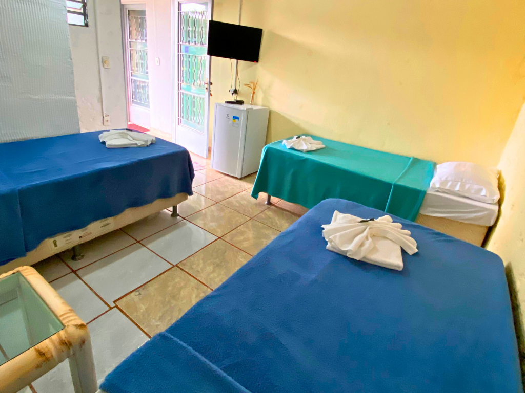 - Café da manhã gratuito, Cama Casal Grande, Cama de Solteiro, TV Smart, Frigobar, Ventilador, Banheiro